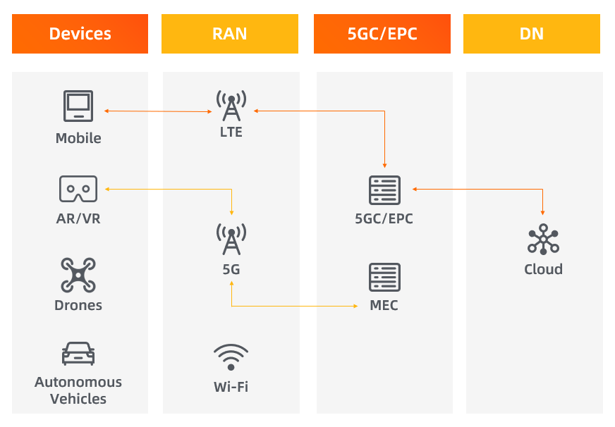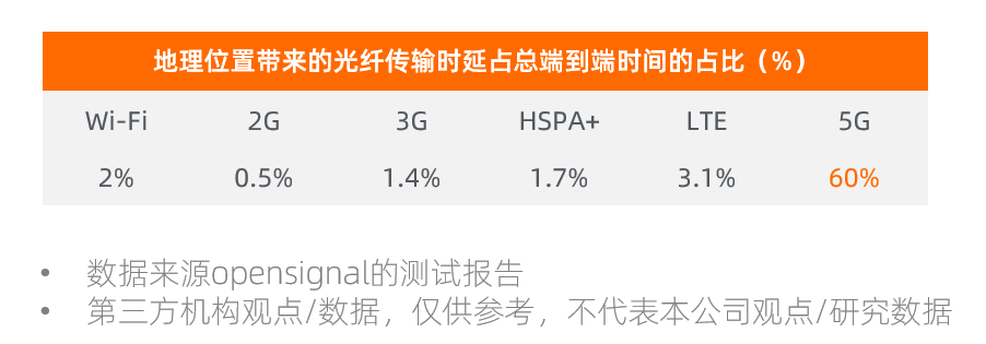 5G所承诺的低时延是1毫秒,但需要强调的是这里的1毫秒只是空口的时延,对于最终用户来说大家可能更关注的是端到端的时延,端到端时延最简单的计算逻辑就是距离,距离产生的时延基本就是光纤传输时延,大概就是100公里1毫秒。所以在5G时代,端到端时延的本质就是距离所产生的光传输时延。