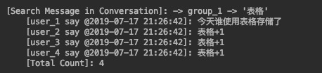 另外,为了做消息的权限管理,仅允许用户检索自己有权限查看的消息,可在消息体字段中扩展接收人ID数组,这样对所有群做检索时,需要增加接收人字段为自己的用户ID这一必要条件,即可实现消息内容的权限限制。样例中没有实现这一功能,用户可根据需求自己增加、修改。