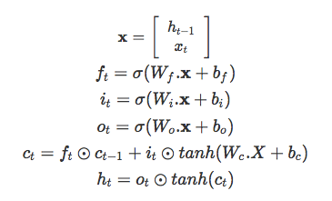 与原版 RNN 不同,LSTM 允许误差通过无限数量的时间步进行反向传播。它包含三个门:输入门、遗忘门和输出门,并通过结合这三个门来计算隐藏状态,如下面的公式所示: