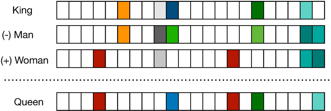 图 2:分布式词向量表征,其中每一个词向量只有 D 维,且远小于词汇量大小 V,即 D<<V。