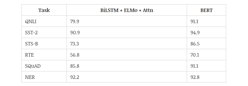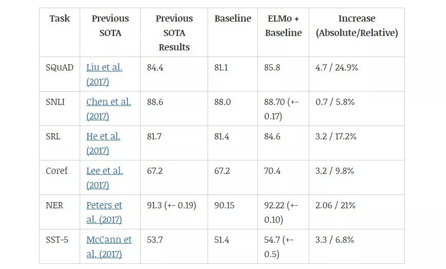 2018 年,使用预训练的语言模型可能是 NLP 领域最显著的趋势,它可以利用从无监督文本中学习到的「语言知识」,并迁移到各种 NLP 任务中。这些预训练模型有很多,包括 ELMo、ULMFiT、OpenAI Transformer 和 BERT,其中又以 BERT 最具代表性,它在 11 项 NLP 任务中都获得当时最佳的性能。不过目前有 9 项任务都被微软的新模型超过。下图展示了不同模型在 12 种 NLP 任务中的效果:
