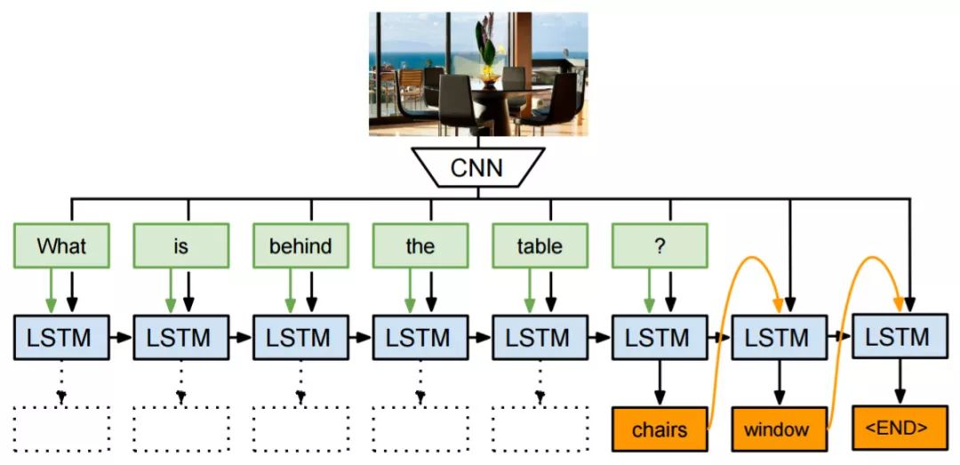 视觉 QA 是另一种任务,需要基于文本和视觉线索生成语言。2015 年的论文《Ask Your Neurons: A Neural-based Approach to Answering Questions about Images》是首个提供端到端深度学习解决方案的研究,他们使用 CNN 建模输入图像、LSTM 建模文本,从而预测答案(一组单词)。