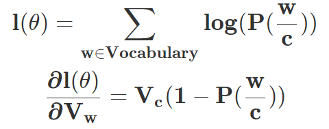 参数 θ={V_w, V_c} 都是通过定义目标函数而学习到的,一般目标函数可以定义为对数似然函数,且通过计算以下梯度更新权重: