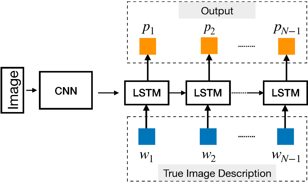 图 12:结合 LSTM 解码器和 CNN 图像嵌入器,生成图像字幕(图源:https://www.cv-foundation.org/openaccess/content_cvpr_2015/papers/Vinyals_Show_and_Tell_2015_CVPR_paper.pdf)