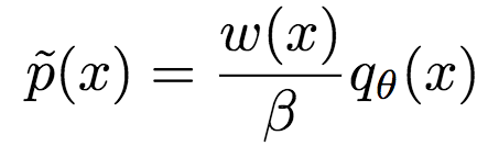 这样改写后,很明显了,这可以看成一个重要性采样(importance sampling)问题。(重要性采样是强化学习中推导策略梯度的常用方法。)相应地,w*(x)为最优重要性权重(importance weight)。