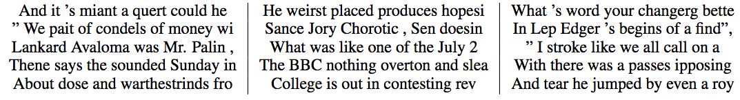 下为随机选取的在1-billion word数据集上训练的BGAN上生成的文本的3个样本: