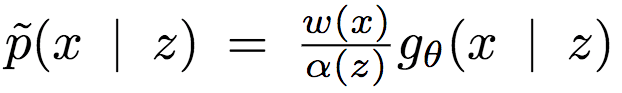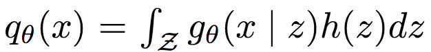 其中,gθ(x | z): Z -> [0, 1]d为条件密度,h(z)为z的先验。