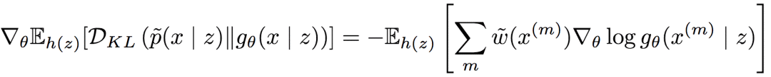 为使用蒙特卡洛估计的归一化重要性权重,则期望条件KL散度的梯度为: