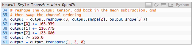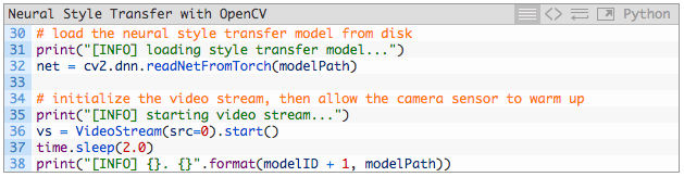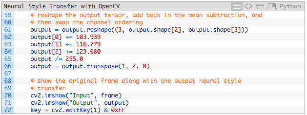 首先,打开neural_style_transfer_video.py文件,插入以下代码: