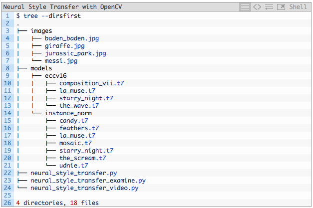 在开始今天的教程前,请先下载我提供的资料(点击文末原文地址获取资料)。准备好了脚本、模型和图像后,你可以用tree指令检查项目的结构: