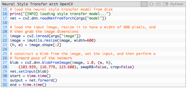 今天的教程是教大家如何用OpenCV和Python在图片和视频上运用神经风格迁移。具体来说,我们用的模型是Johnson等人于2016年提出的,你可以在我提供的链接中下载。希望这篇教程对你有用!