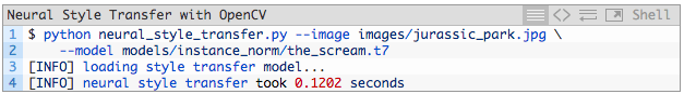 现在,对命令行参数做简单改变,然后用《侏罗纪公园》中的截图作为内容图像,进行风格迁移: