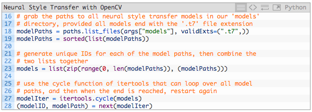利用一个特殊的Python迭代器,它可以让我们在模型路径中循环使用所有可用的神经风格迁移模型。