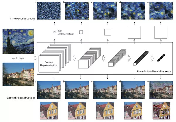 在Gatys等人提出的首篇论文中,神经风格迁移算法不需要新的架构。相反,我们可以用一个预训练网络(通常在ImageNet上进行的预训练),并且定义一个损失函数,能让我们达到风格迁移的目标,然后对损失函数不断优化。