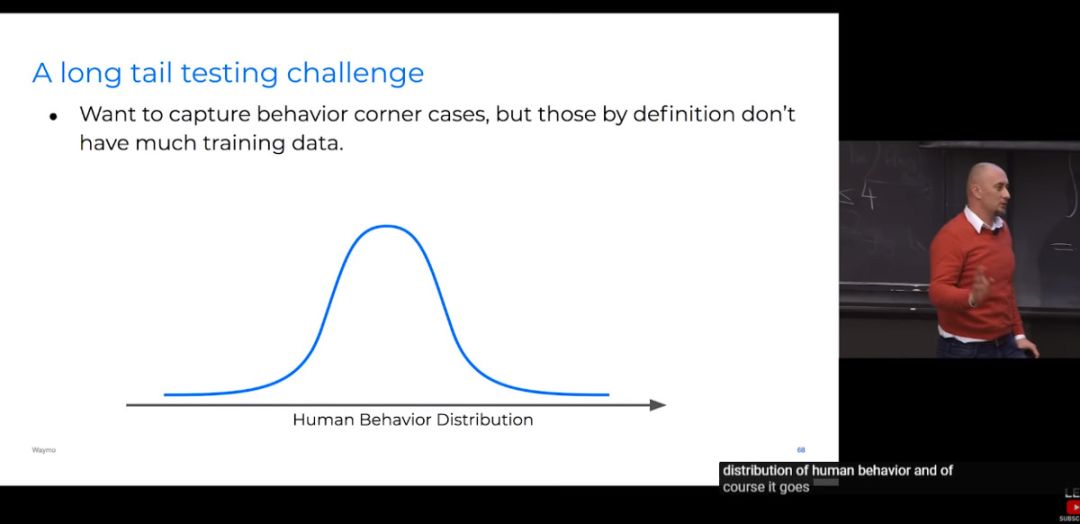 上图是人类行为分布,可以看到这是个正态分布,所以这就是导致了「长尾巴情况」的根本原因。即使图像两端的情况很少发生,我们的测试也要涵盖进去所有的人类行为情况。