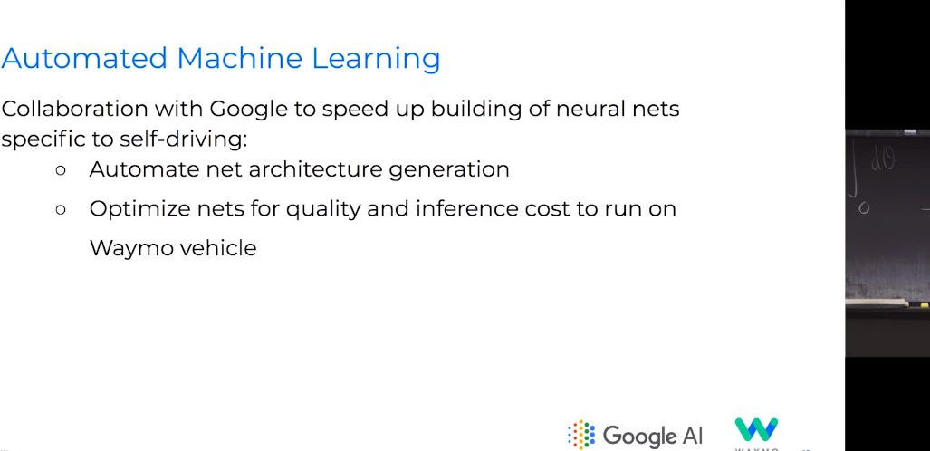 总结:Waymo 专家举出的有人带着停车标志是一个有趣例子,而且对机器学习的一个非常基本的介绍,其中提到了 AutoML 模型,可以测试多达 10K 的不同架构。然后采用前 100 个架构,在更大的模型上进行测试。Waymo 是一个混合系统,使用 ML 和混合 ML(传统的 ML 编程)。随着 ML 能力的增长,传统场景越来越少。视频中也提到了 waymo 如何测试,结构化测试,是否有封闭的测试环境。在模拟器方面,他们认为代理能够模拟现实世界中发生的事情。不断扩大复杂模型,来处理长尾问题。或者利用专家领域知识,换句话说混合模型或传统编程。以及逆强化学习,值得深入研究。