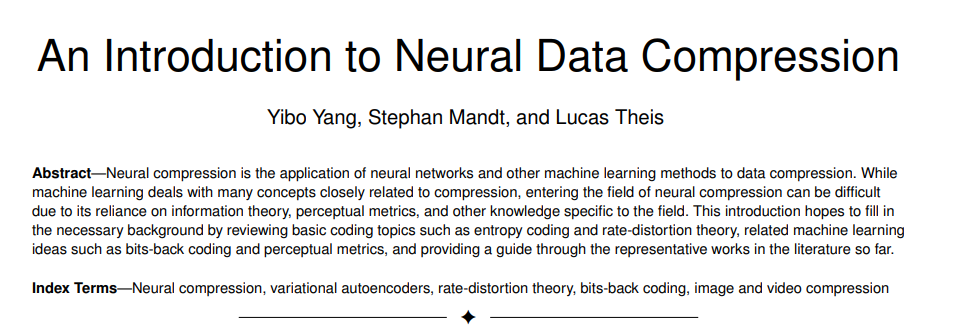 数据压缩的目标是减少表示有用信息所需的比特数。神经,或学习压缩,是应用神经网络和相关机器学习技术的任务。本文旨在通过回顾信息论背景以及神经压缩的代表性方法和技术,为机器学习研究者提供一个切入点。神经压缩借鉴了基于学习的图像处理方法的丰富历史。事实上,计算摄影中的许多问题可以被视为有损图像压缩;例如,图像超分辨率可以通过学习固定编码器的解码器(图像降采样过程)[1][2]来解决。事实上,神经网络在20世纪80年代末和90年代就已经被应用于图像压缩[3][4],甚至有一篇早期的综述文章[5]。与早期的工作相比,现代方法在规模、神经结构和编码方案上有显著的不同。