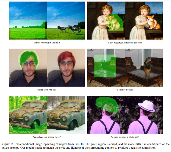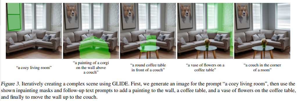 如下图 3 所示,GLIDE 的零样本生成和修复复杂场景的能力也很强。