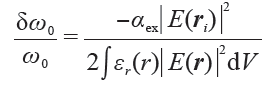 其中, εr 是介质的介电常数, ω0 代表模式谐振角频率, αex 为颗粒的极化强度。从公式中可以看出模式移动大小不仅与颗粒的极化强度(取决于粒子的尺寸与折射率)有关,而且跟颗粒所在位置电场强度有关,即与颗粒粘附位置有关。