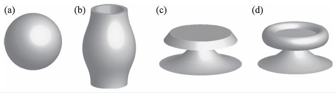 图2 几种常见的回音壁模式光学微腔(a)微球腔;(b)微泡腔;(c)微盘腔;(d)微芯圆环腔