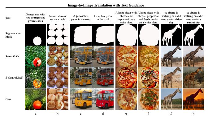 这篇论文提出了一个新的图像到图像迁移方法,通过生成对抗网络将可控因素(即自然语言描述)嵌入到图像到图像的迁移中,从而使文字描述可以确定合成图像的视觉属性。这个新方法由4个关键组成部分组成:1、实施词性标注以过滤掉给定描述中的非语义词;2、采用仿射组合模块来有效融合不同形式的文本和图像特征;3、一种新的精细多级架构,以增强判别器的判别能力和生成器的纠正能力;4、一种新的结构损失,进一步提升了判别器的性能,以更好地区分真实图像和合成图像。COCO数据集上的实验表明了这篇论文提出的方法在视觉真实性和语义一致性方面均具有出色的性能表现。