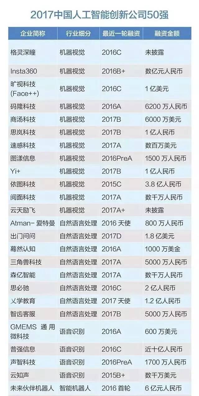 人工智能作为下一个引领式创新的风口机会,越来越受到资本的关注,应用场景不断拓展,近几年国内涌现了一大批优秀的初创公司。2017年,创业邦首次推出了“人工智能创新公司 50 强”这一专项榜单,在历时三个月对 290 家国内人工智能创新公司进行深入调研后,创业邦研究中心评选出了 50 家最优秀的、且在该领域取得技术和商业化突破的新创公司。
