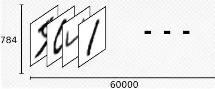 下载下来的数据总共有60000行的训练数据集(mnist.train),和10000行的测试数据集(mnist.test),同时我们把图片设为x,x是一个shape=[None,784]的一个张量,None表示任意长度,比如它可以小于或等于mnist.train里面的60000张图片。另外,每一张图片包含28像素X28像素,向量长度为28*28=789,表示图片是由784维向量空间的点组成的。然后,我们把图片的标签设为y_张量,shape=[None,10],这个y_的值就是图片原本对应的标签(0~9的数字)。