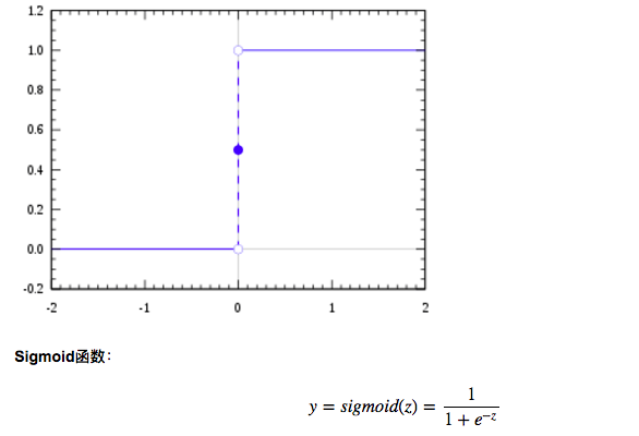 我们先在二分类中来讨论,假如能创建一个模型,如果系统输出1,我们认为是第一类,如果系统输出0,我们认为是第二类,这种输出需求有点像阶跃函数(海维塞德阶跃函数),但是阶跃函数是间断函数,y的取值在x=0处突然跳跃到1,在实际的建模中,我们很难在模型中处理这种情况,所以我们使用Sigmoid函数来代替阶跃函数。