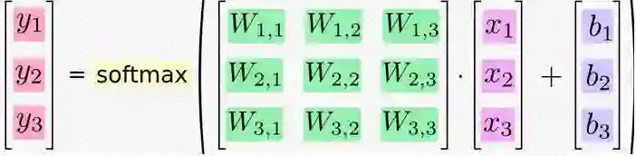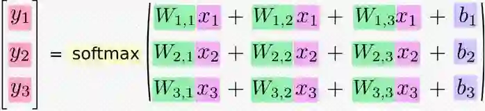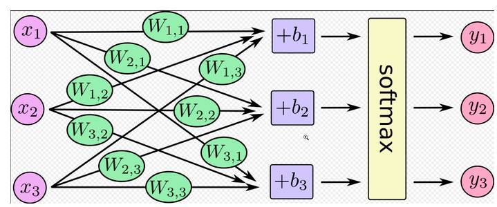 对于Softmax回归模型的解释,在这里引用一下别人的图,一张图片就胜过千言万语。