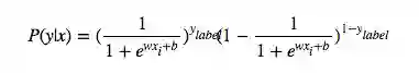 上式中的是样本为类别1的实际概率。接着我们取对数似然函数,然后最小化似然函数进行参数估计(这里省略似然函数和一系列文字)。