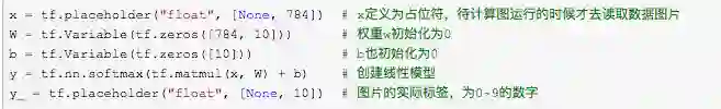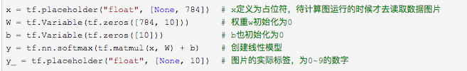 y_ = tf.placeholder("float", [None, 10])# 使用Tensorflow自带的交叉熵函数cross_entropy = tf.nn.softmax_cross_entropy_with_logits(labels=y_, logits=y)