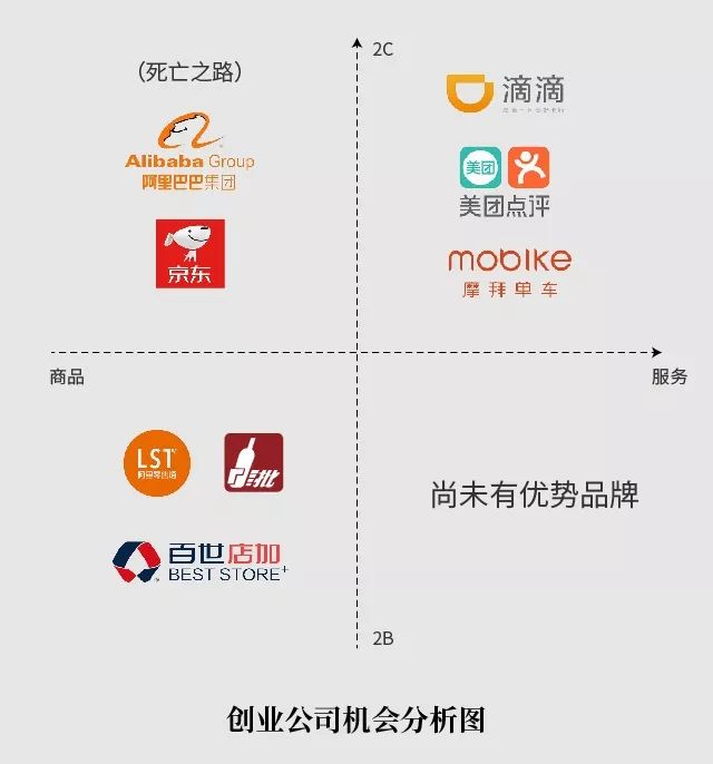 创业公司要避免踏入不毛之地,最好用户和商品两端都和巨头不重复。美团点评、滴滴出行的崛起,因为卖的是服务,与巨头供应链不同。易久批和巨头供应链可能一样,但是用户群是终端,巨头没有先天优势。