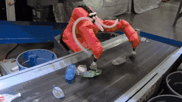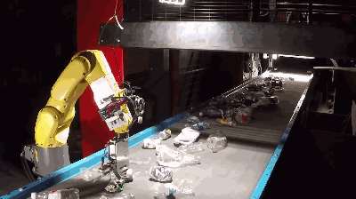 这款机器人还有一个最大的亮点便是,它的动作非常迅速。末端执行器摒弃了机器抓手这种失误率较高的工具,而且采用气动抓手,只要看准目标便可以强力吸入,然后再将相应的垃圾抛向不同的垃圾堆。