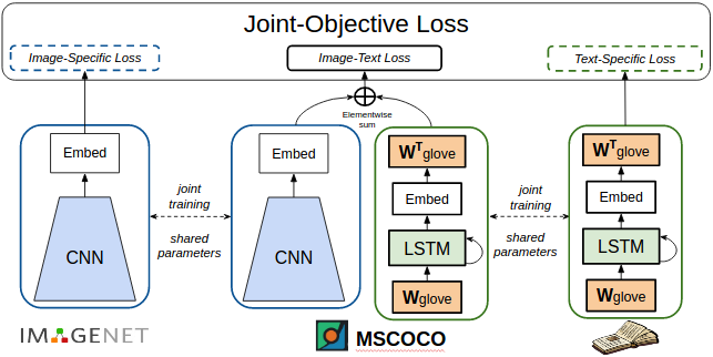 我们将视觉网络的和语言模型的输出与字幕模型联合起来。该模型与现有的 ImageNet 预训练字幕模型相似。但是,我们观察到尽管该模型在 ImageNet 上接受预训练,当该模型在 COCO 图像-字幕对数据集上进行训练/微调时,它倾向于遗忘之前见过的物体。蒙特利尔和 Google DeepMind 的研究者也观察到了神经网络中的遗忘问题。我们在研究中,使用联合训练策略可以解决遗忘问题。