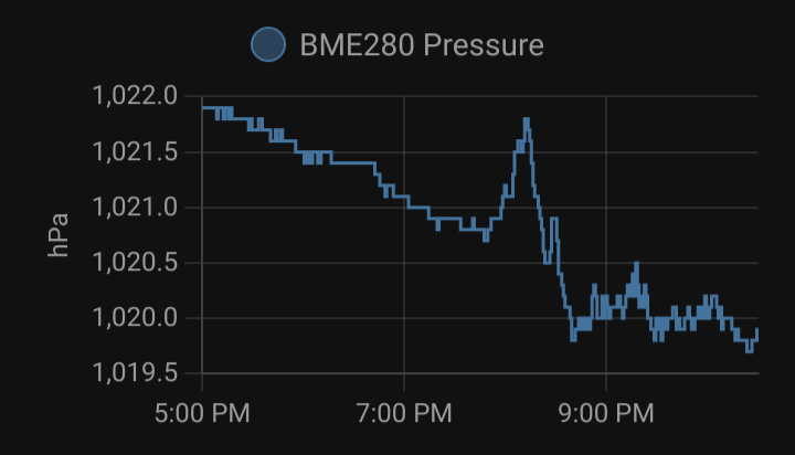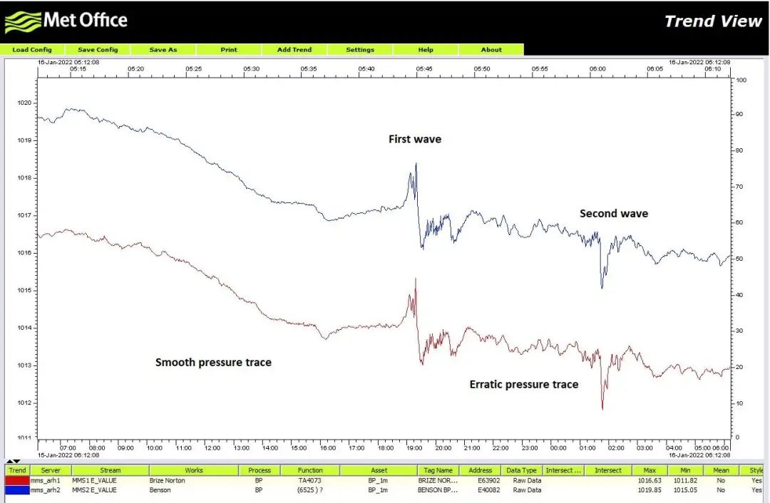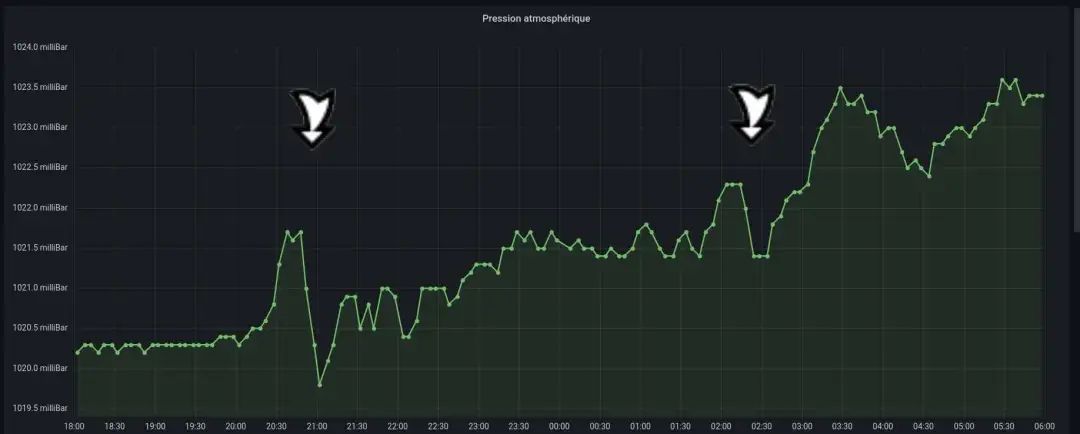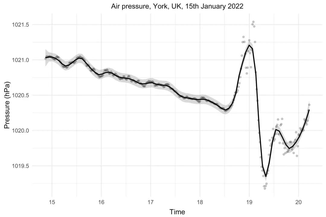 2022年1月15日晚,家住英国约克市的生物工程师桑迪·麦唐纳在家里用树莓派的 Pimoroni Breakout Garden Mini 扩展板加装了 BME280 传感器,编定程序每5秒记录一次数据。这些加起来不到120美元的硬件,组合成了一个简易的大气震波检测套装。