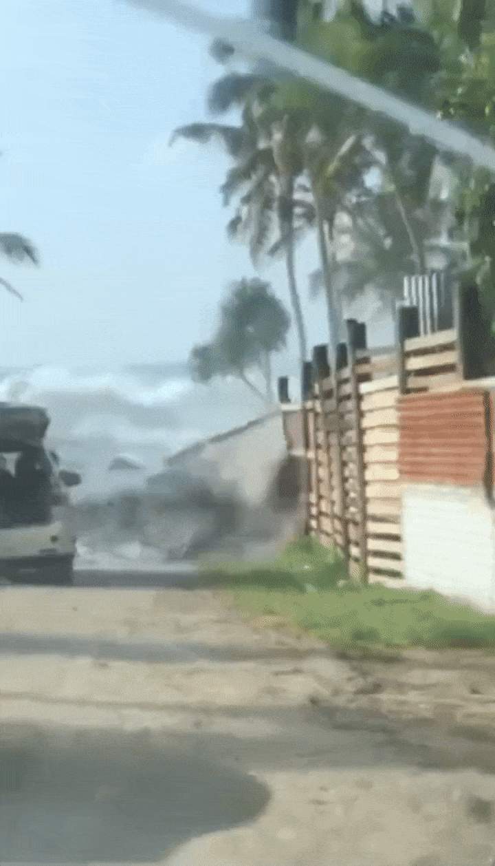 社交媒体上出现了大浪淹没沿海地区的照片和视频,并有报道称人们正在向内陆和高处转移。