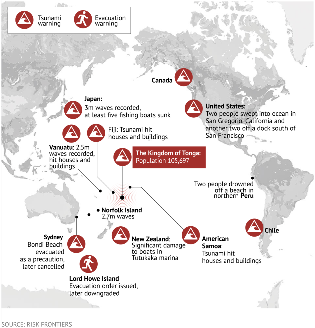 但1月当地一座水下火山的喷发,却在半个地球上掀起了字面意义的惊涛骇浪。