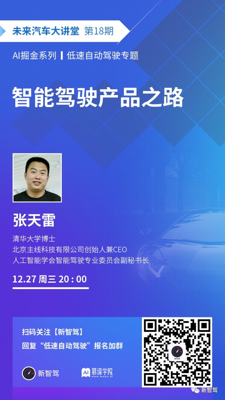 2、关注微信公众号“新智驾”(ID:AI-Drive),进入微信后台直接回复关键词“低速自动驾驶”,可预约课程;