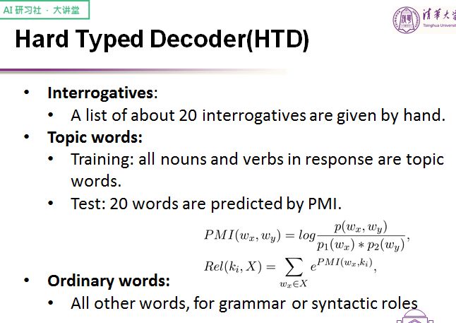 然而在实际使用中,回复不可能事先给定好,所以会稍稍麻烦一些。为了更好的进行预测,我们引入了点互信息 PMI 这么一个概念,用于衡量 post 中出现的词与在 response 中出现的词之间的关联程度。