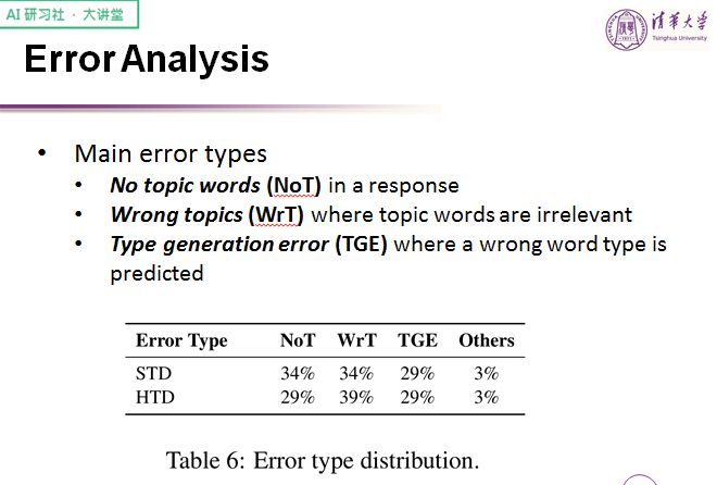 我们的模型常见的错误主要体现在没有话题词、生成错误的话题词、类型预测错误,三者各自所占的比例都比较相近。