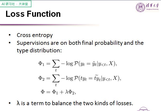 至于在损失函数这块,我们除了像一般的模型一样在词表的概率分布上做出了损失函数,同时也在词类的 gate 上加了监督,并且利用 lambda 这样一个超参数将两部分进行调和。