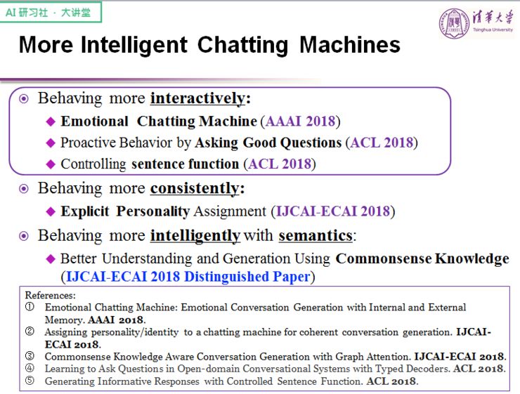 今天我们主要谈的是基于生成的闲聊系统,先来看一些比较新的研究成果。
