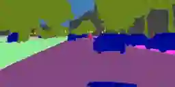 图 2:Apolloscape 的结果。左图:pix2pixHD。中间:COVST。右图:作者提出的方法。输入语义分割掩码视频在左下角展示。