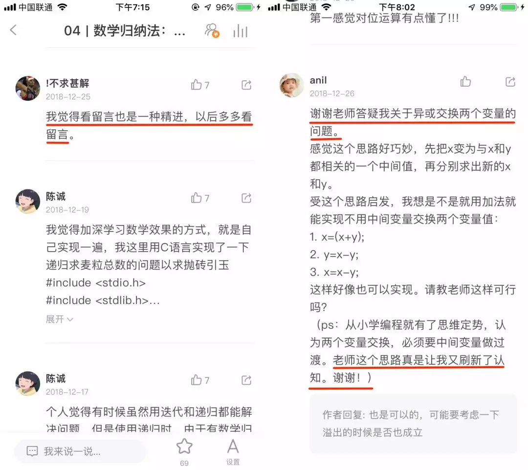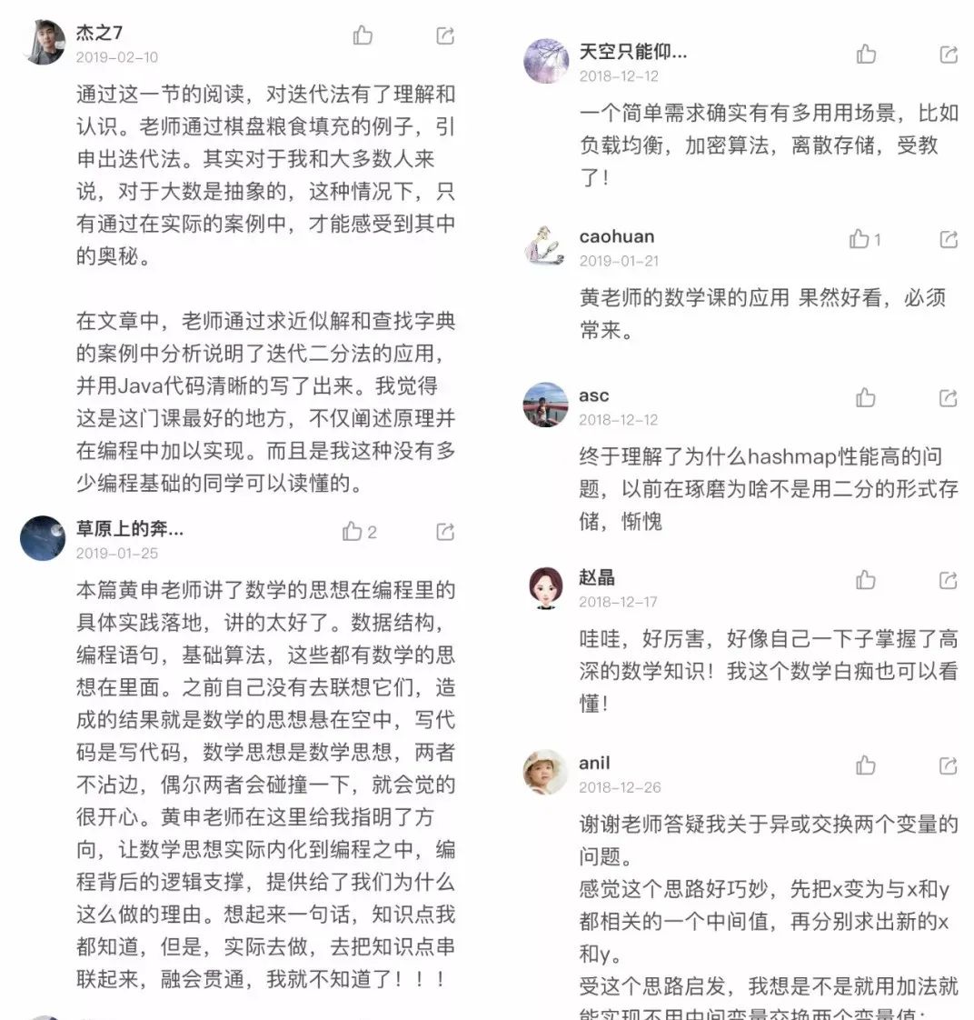 第三,每篇文章老师都会留个难度适中的思考题,并在评论区跟大家耐心互动,解答大家提出的问题。