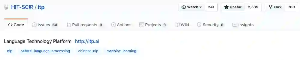 LTP 的全称为「Language Technology Platform」,是哈工大社会计算与信息检索研究中心(HIT-SCIR)历时多年研发的一整套高效、高精度的中文自然语言处理开源基础技术平台