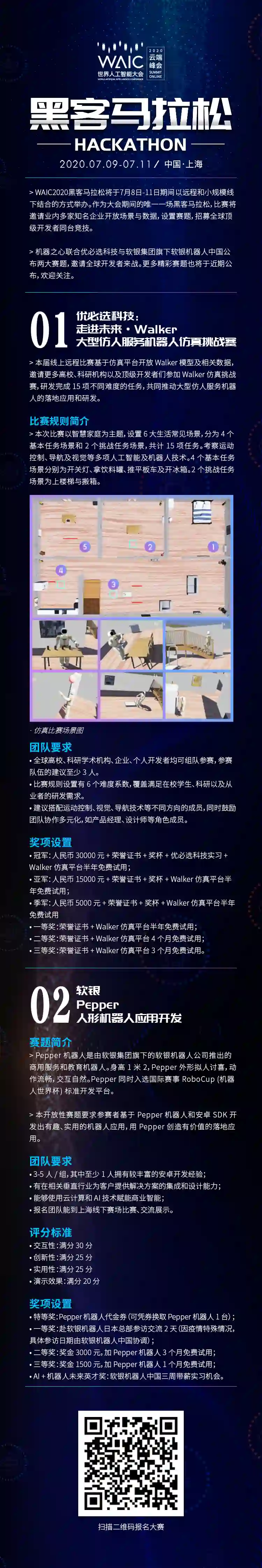 世界人工智能大会线上活动(WAIC)是由上海市政府打造的国际顶级人工智能会议。为进一步促进人工智能技术与产业相融合,推动开发者技术生态建设,WAIC 2020年黑客马拉松将于7月9日-11日期间举办。