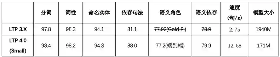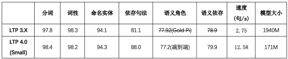 此处速度数据在人民日报命名实体测试数据上获得,速度计算方式均为所有任务顺序执行的结果。另外,语义角色标注与语义依存新旧版采用的语料不相同,因此无法直接比较(新版语义依存使用 SemEval 2016 语料,语义角色标注使用 CTB 语料)。