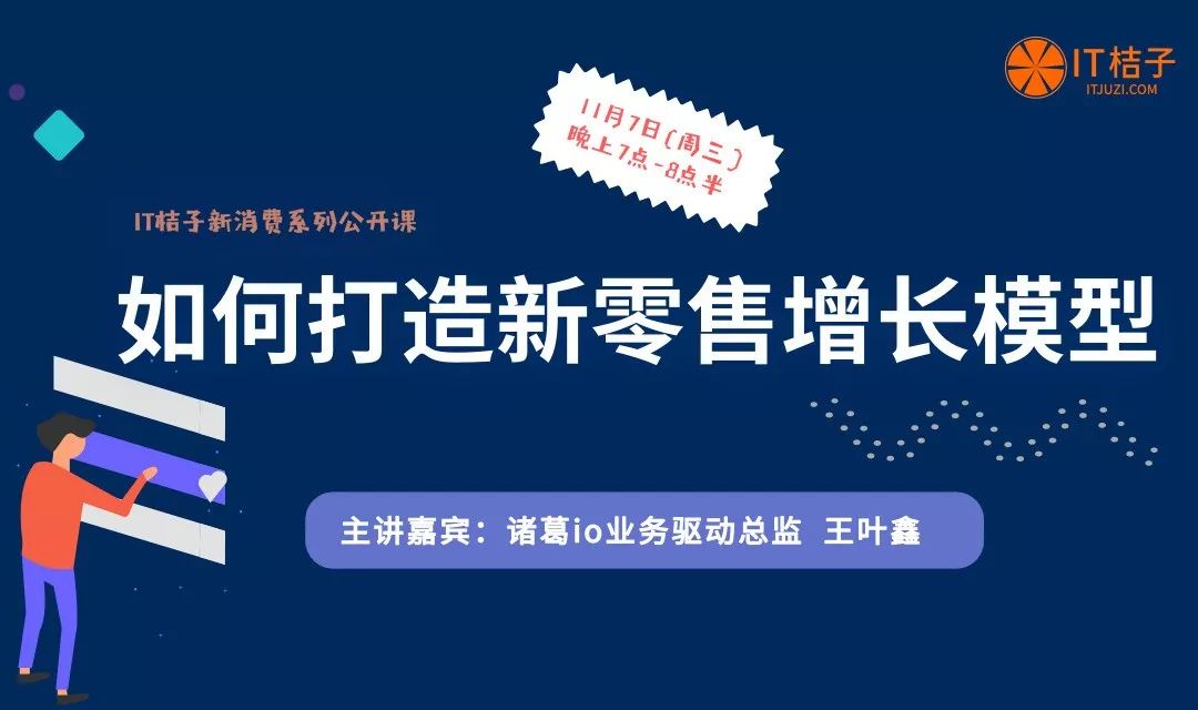 11 月 7 日(周三)晚上 7 点,IT 桔子联合诸葛 IO,将聚焦新消费,与大家分享,如何通过数据驱动增长,精细化运营,低成本快速实现用户增长,打造高效的用户增长体系。