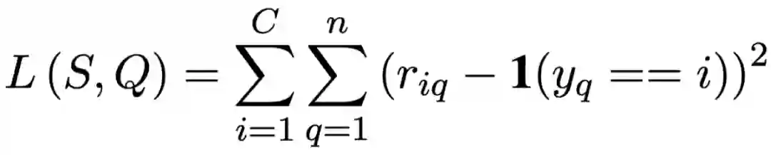 通过这种方式训练的 base 分类器,属于同一个类的特征向量必然会和对应的分类参数特别接近,所以最后的分类参数 W 就可以做为 base 类的类别特征,进而做为 meta learning 的记忆模块。 在 meta learning 阶段,我们将类别向量和 query 向量一起输入该分类器,得到新类别的分类打分: