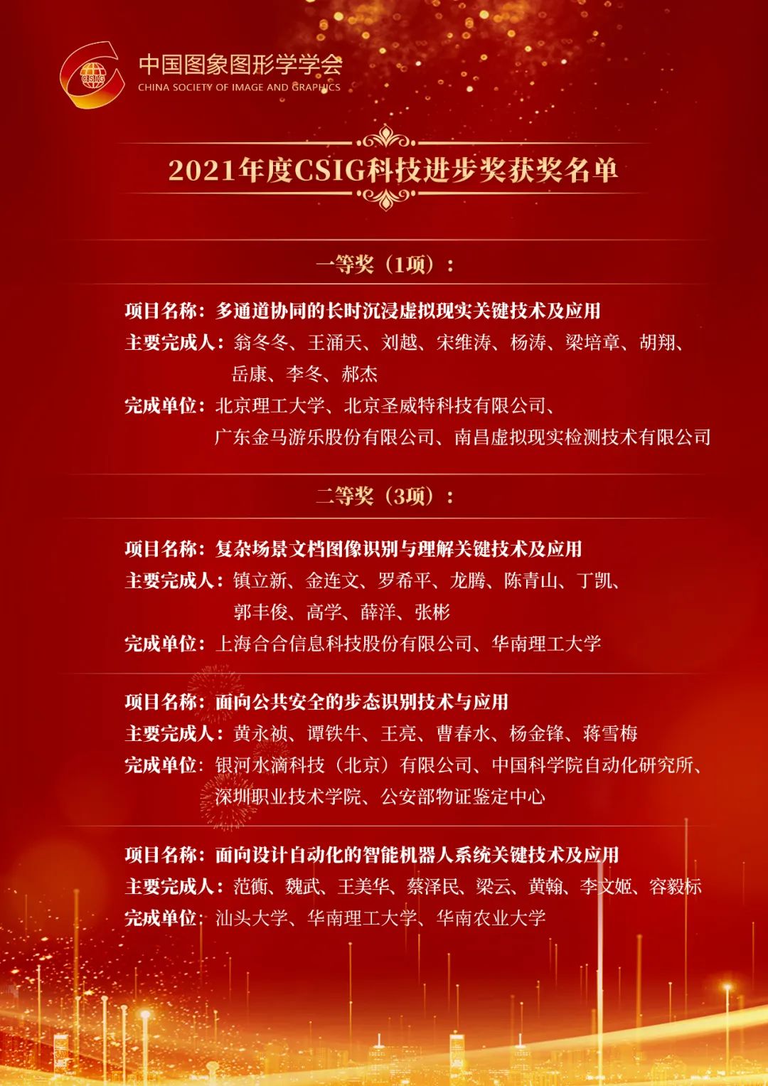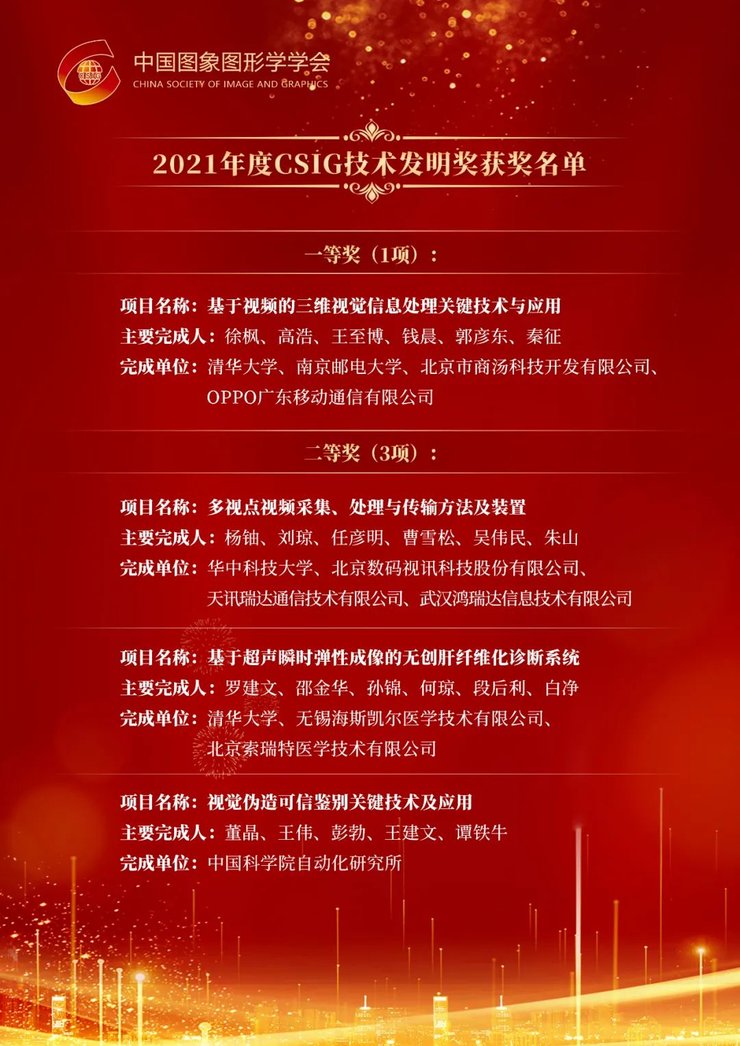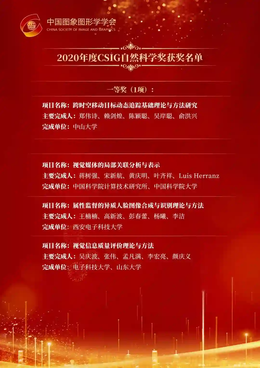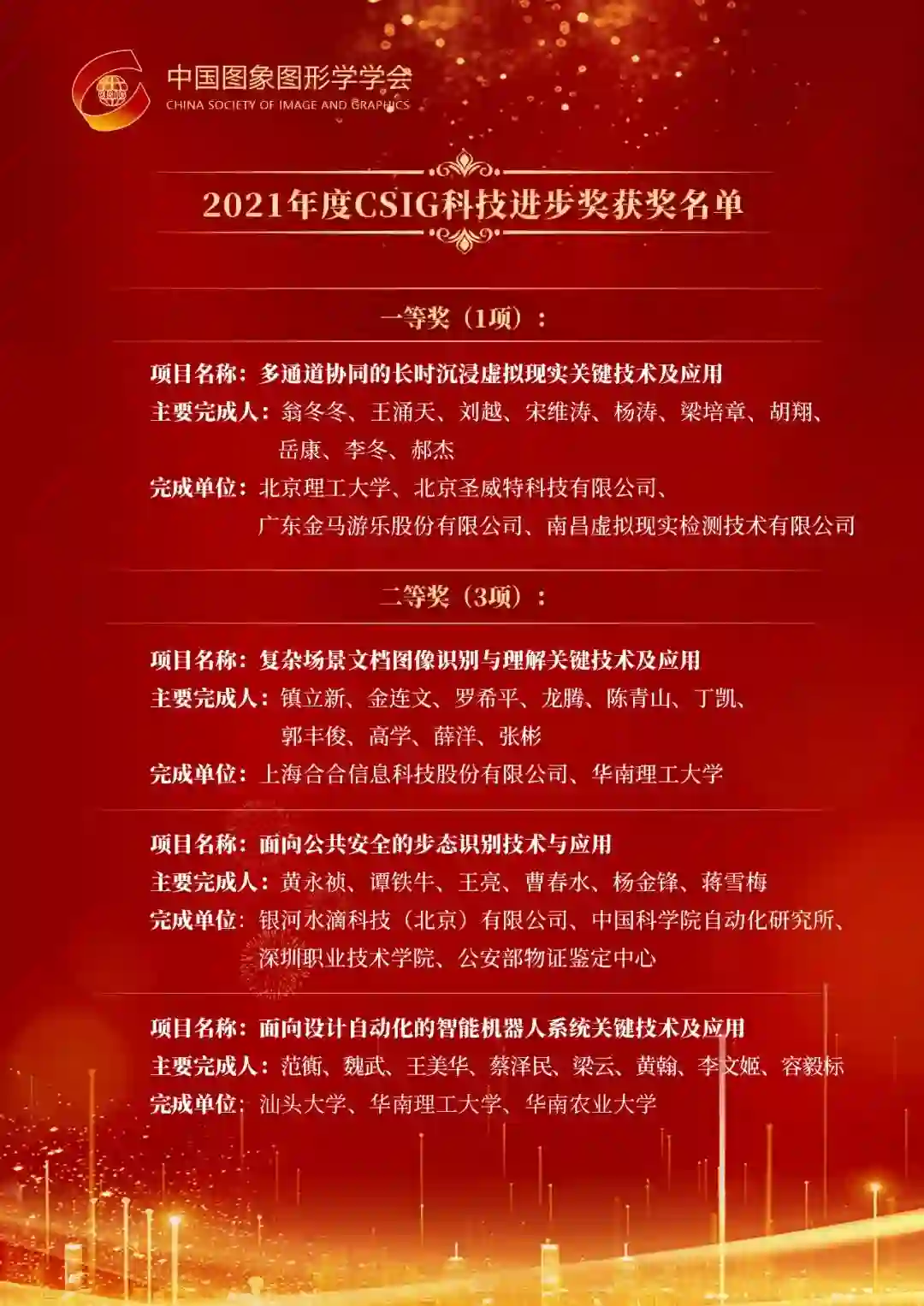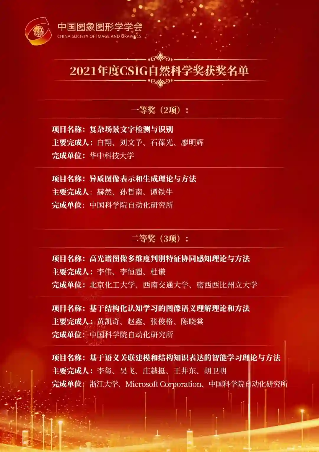 CSIG自然科学奖、技术发明奖、科技进步奖于2018年设立,授予我国图像图形学领域的重要理论、技术和产业成果,旨在通过奖励机制充分调动我国图像图形学科技工作者的积极性和创造性,推进图像图形学技术领域的科技创新与产业发展。